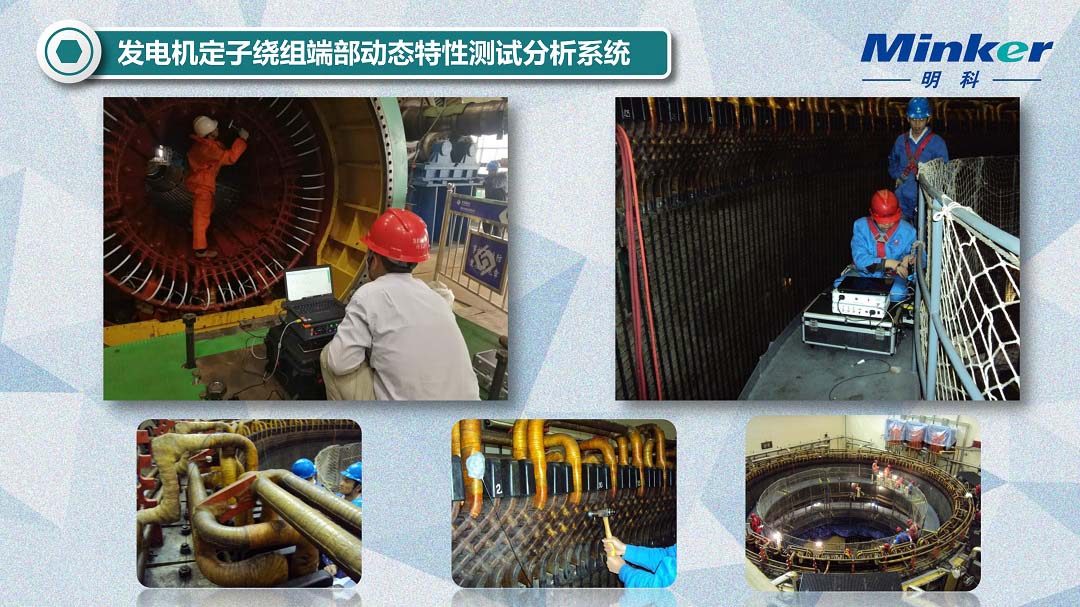 发电机模态振动分析测试系统由便携式计算机、力锤、加速度传感器、电荷放大器、数据采集箱(AZ308)及发电机绕组振动测试软件包组成。具有汽轮机侧模态、励磁机侧模态、定子整体模态、绕组鼻端和引线固有频率测量五项功能。